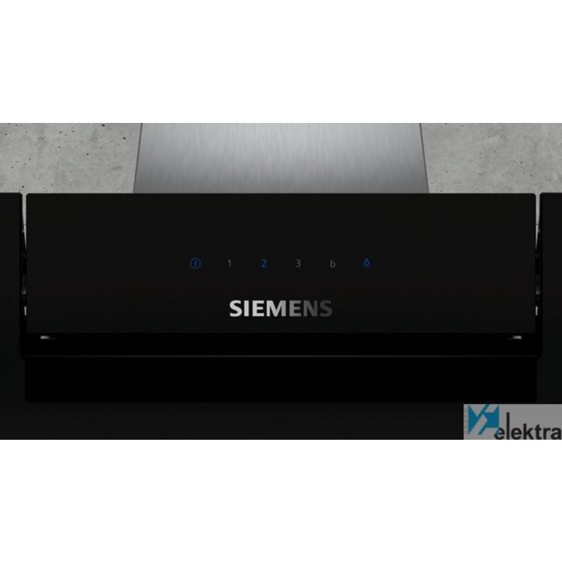 Siemens iQ300 LC87KEM60. Máxima capacidad de extracción: 669 m³/h, Tipo de extracción: Canalizado, Clasificación eficiencia dinámica de fluidos: B. Tipo: De pared, Color del producto: Negro, Material de la carcasa: Vidrio. Tipo de filtro de grasa: Aluminio, Número de filtros: 2 pieza(s). Número de bombillas: 2 bombilla(s), Tipo de bombilla: LED, Iluminancia: 114 lx. Consumo de energía anual: 5 ...Recipiente :