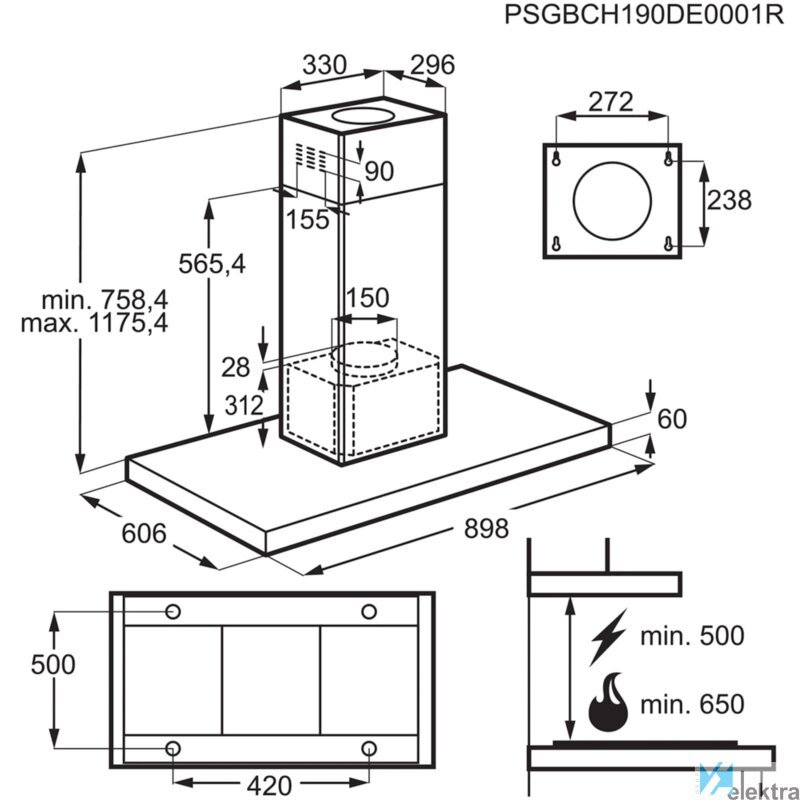 Campana AEG extractora de isla Beta Glam de acero inoxidable de 90 cm DIE5961HGRecipiente :