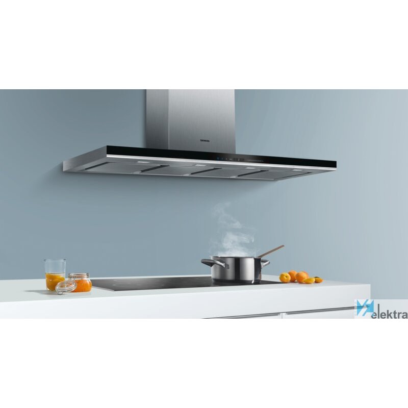 Siemens LC21BA582. Máxima capacidad de extracción: 740 m³/h, Tipo de extracción: Canalizado/Recirculación, Clasificación eficiencia dinámica de fluidos: A. Tipo: Isla, Color del producto: Acero inoxidable, Tipo de control: Tocar. Tipo de filtro de grasa: Sintético. Potencia de bombilla: 3 W, Número de bombillas: 4 bombilla(s), Tipo de bombilla: LED. Carga conectada: 272 W, Potencia del motor: 260 W, Voltaje de entrada AC: 220-240 V