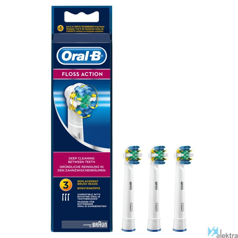 Oral-B FlossAction EB25. Número de cabezales incluido: 3 pieza(s), Color del producto: Multicolor, País de origen: Alemania. Peso: 17 g. Ancho del paquete: 18 mm, Profundidad del paquete: 60 mm, Altura del paquete: 220 mm. Cantidad por paquete: 3 pieza(s), Ancho de la caja principal: 126 mm, Longitud de la caja: 149 mm. Cantidad de paquetes en el interior: 6 pieza(s)Recipiente :