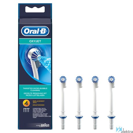 Oral-B OxyJet 80298118. Número de cabezales incluido: 1 pieza(s), Color del producto: Negro, Azul, País de origen: Alemania. Peso: 14 g. Ancho del paquete: 33 mm, Profundidad del paquete: 60 mm, Altura del paquete: 220 mm. Cantidad por paquete: 4 pieza(s), Ancho de la caja principal: 149 mm, Longitud de la caja: 217 mm. Cantidad de paquetes en el interior: 6 pieza(s)Recipiente :