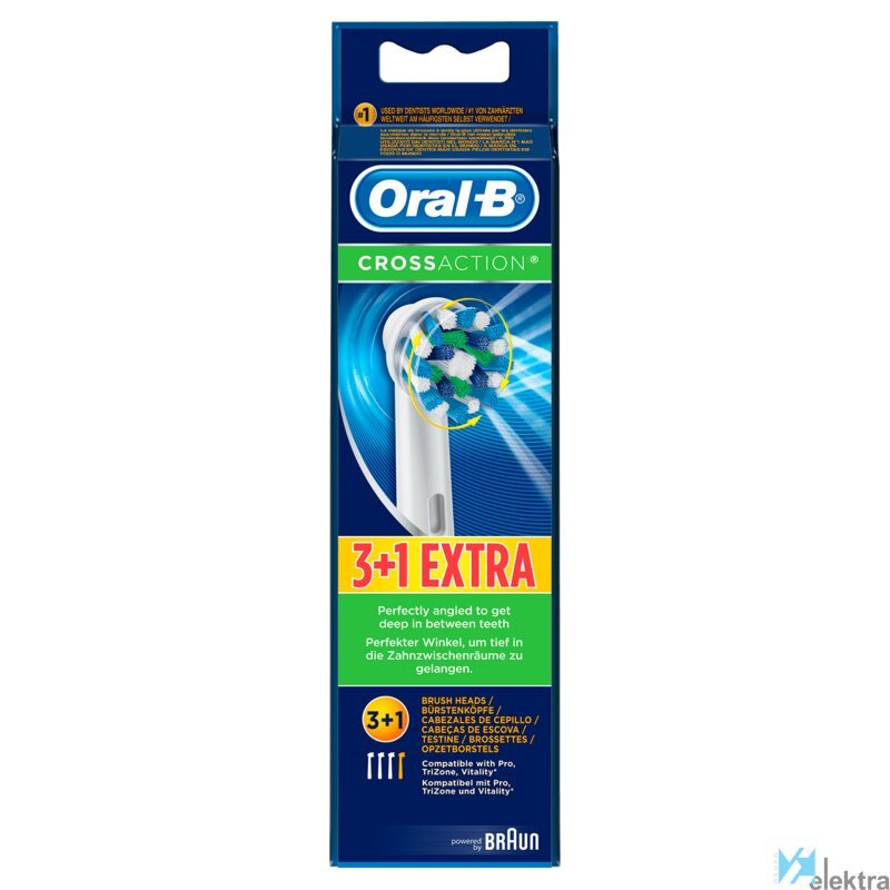 Oral-B CrossAction 80250705. Número de cabezales incluido: 4 pieza(s), Color del producto: Azul, Blanco, País de origen: Alemania. Peso: 22 g. Ancho del paquete: 18 mm, Profundidad del paquete: 60 mm, Altura del paquete: 220 mm. Cantidad por paquete: 4 pieza(s), Ancho de la caja principal: 126 mm, Longitud de la caja: 149 mm. Cantidad de paquetes en el interior: 6 pieza(s)
