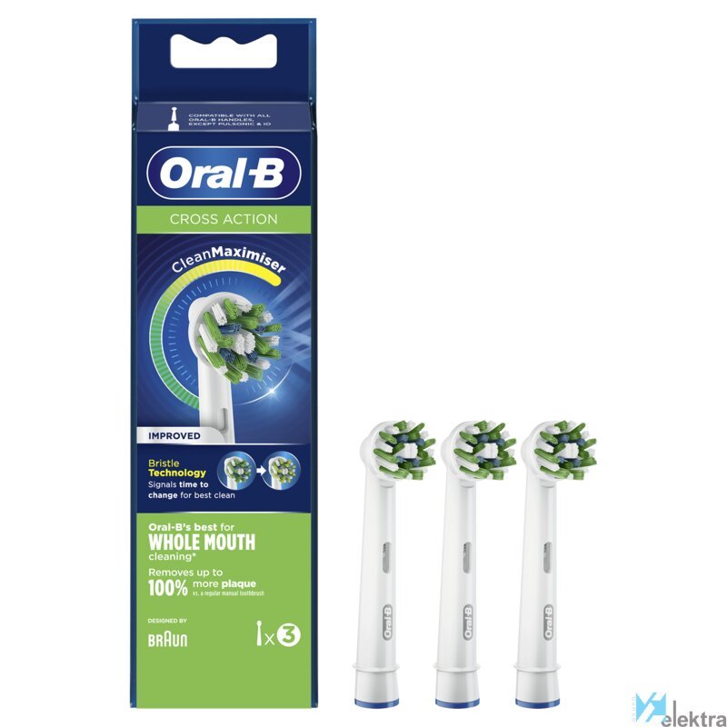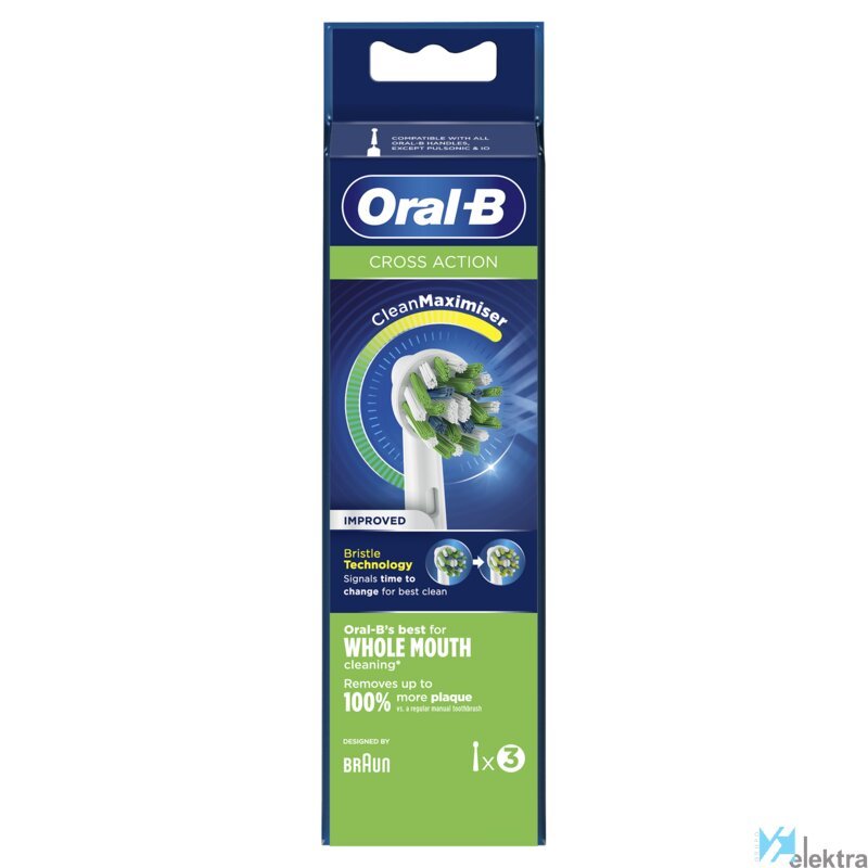Oral-B CrossAction 80338444. Número de cabezales incluido: 3 pieza(s), Color del producto: Blanco, Tecnologías específicas: CleanMaximiser. Peso: 16,35 g. Ancho del paquete: 18 mm, Profundidad del paquete: 60 mm, Altura del paquete: 220 mm. Cantidad por paquete: 3 pieza(s), Ancho de la caja principal: 126 mm, Longitud de la caja: 149 mm. Cantidad de paquetes en el interior: 6 pieza(s)Recipiente :
