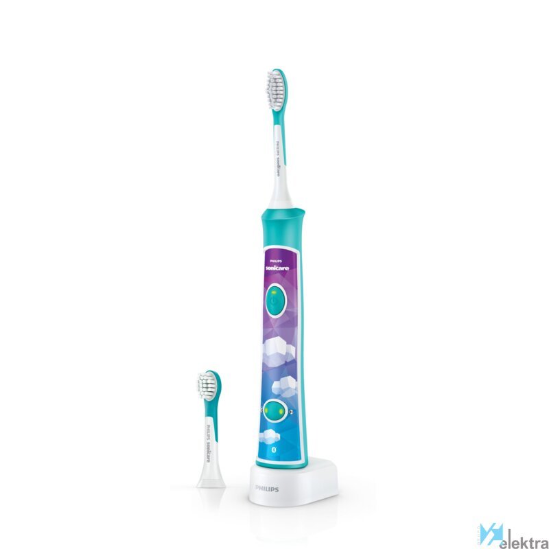 Philips Sonicare For Kids For Kids HX6322/04 Cepillo de dientes para niños. Utilizar con: Niño, Tipo de cepillo de dientes: Cepillo dental sónico, Frecuencia de cepillo de dientes (pulsaciones): 62000 movimientos por minuto. Fuente de energía: AC/Batería, Tecnología de batería: Ión de litio, Voltaje de entrada AC: 110-220 V. Número de empuñaduras incluidas: 1 pieza(s), Número de cabezales incluido: 2 pieza(s)