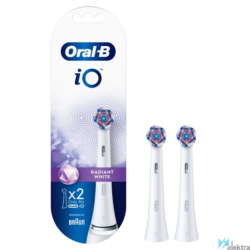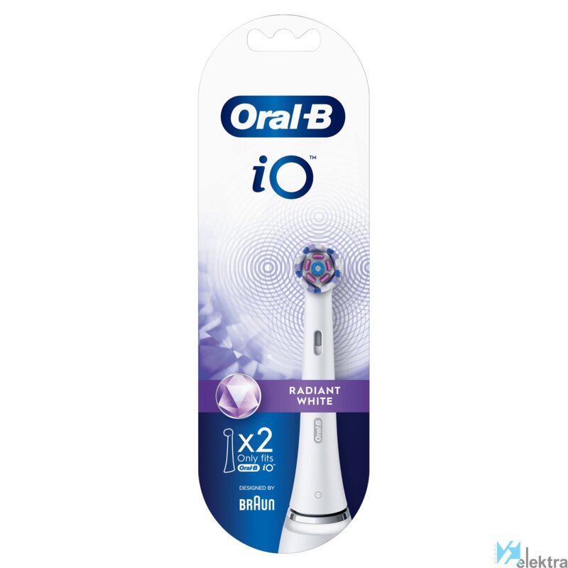 Oral-B iO Radiant White. Número de cabezales incluido: 2 pieza(s), Color del producto: Blanco, Plazo de sustitución del cepillo de limpieza: 3 mes(es). Tipo de embalaje: Blister