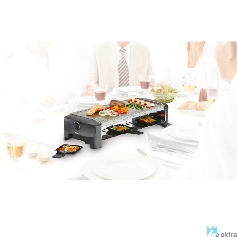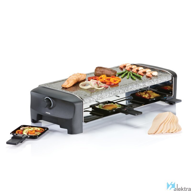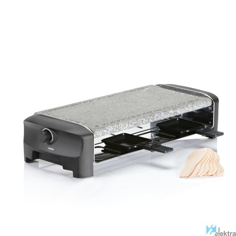Princess 162830 Raclette Stone 8 personas. Número de personas: 8 personas(s), Color del producto: Negro, Factor de forma: Rectangular. Potencia: 1300 W, Voltaje de entrada AC: 220-240 V. Peso: 5,2 kg. Ancho del paquete: 242 mm, Profundidad del paquete: 140 mm, Altura del paquete: 562 mm. Número de cacerolas: 8 pieza(s)Recipiente :
