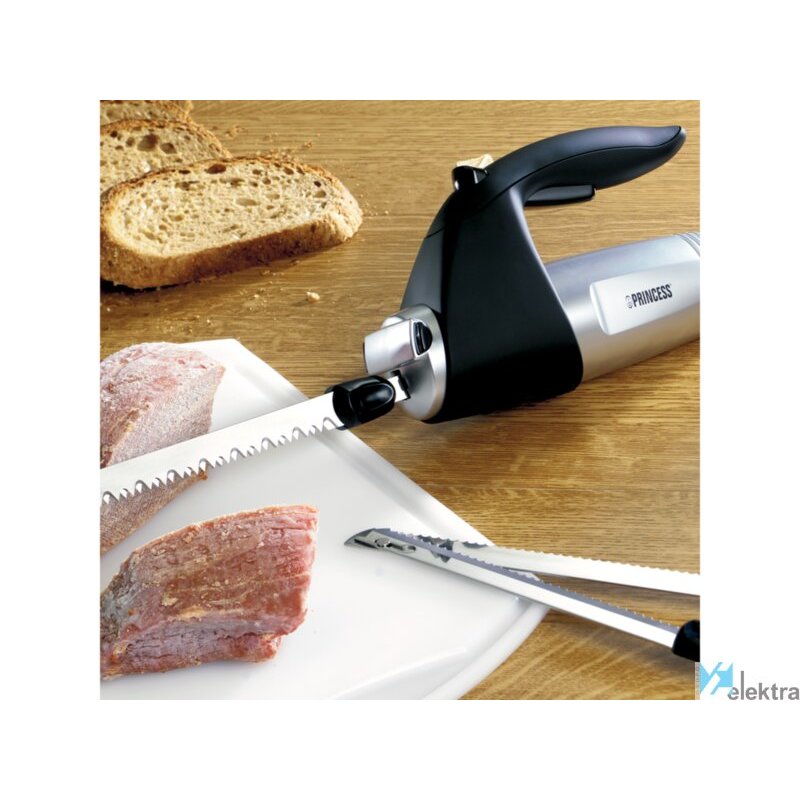 Princess 492952 Cuchillo Eléctrico. Color del producto: Negro, Acero inoxidable. Potencia: 180 W, Fuente de energía: Corriente alterna, Voltaje de entrada AC: 220-240 VRecipiente :