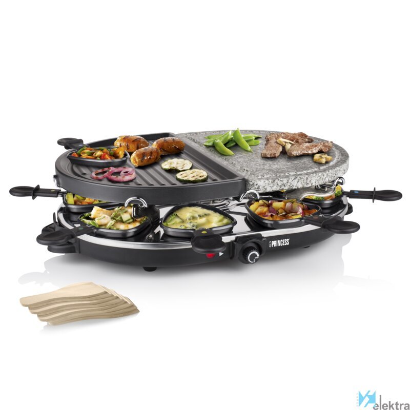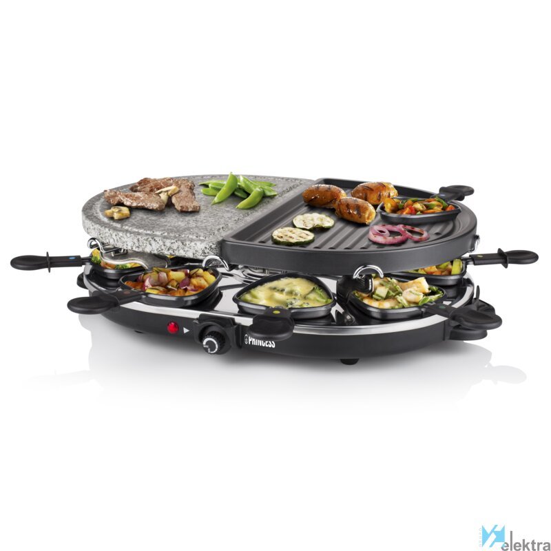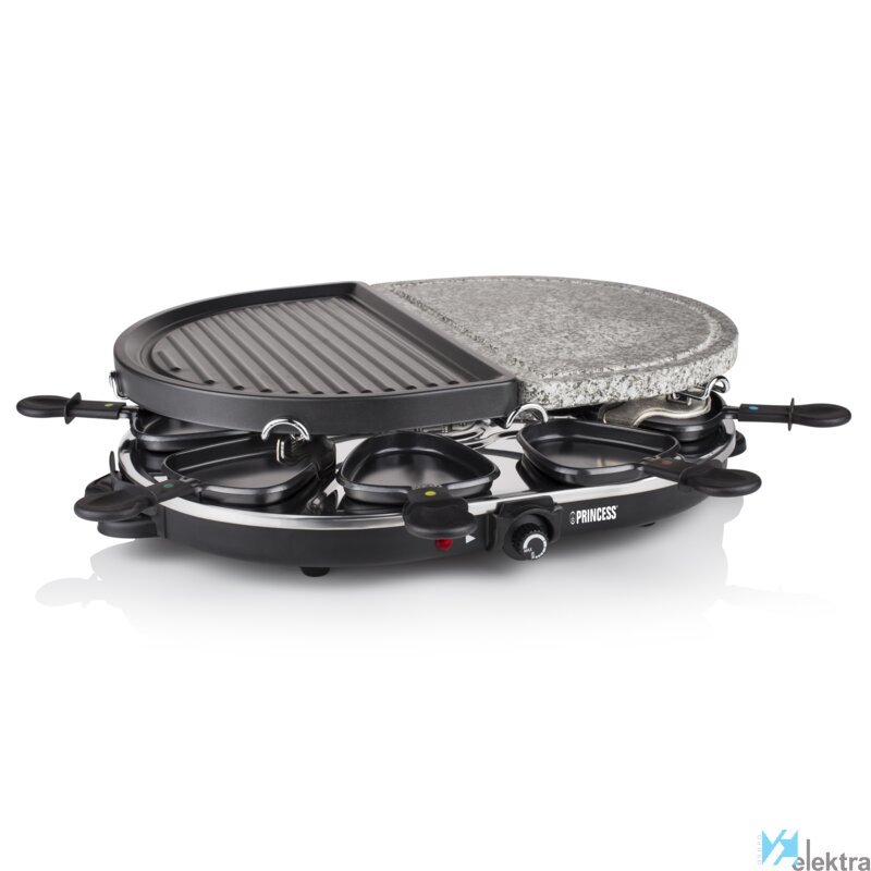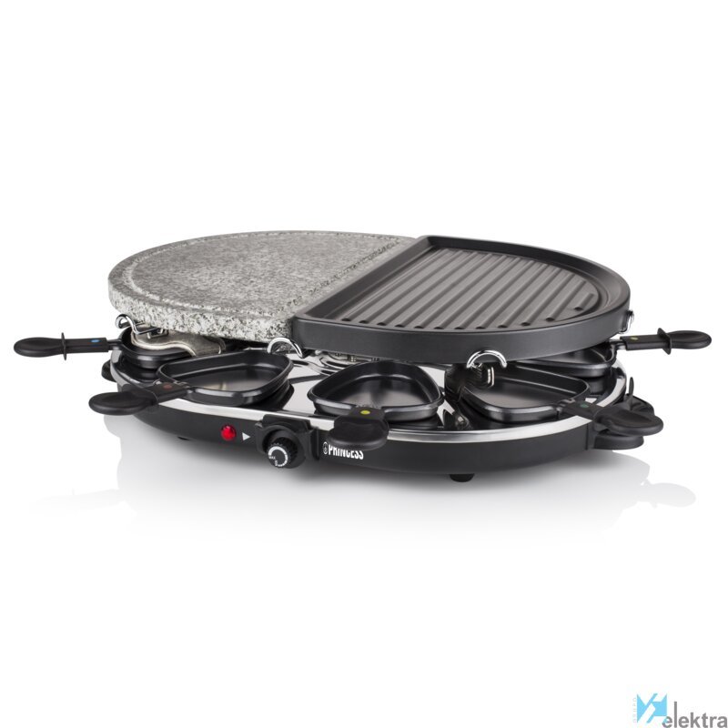 Princess 162710 Raclette Oval Stone & Grill 8 personas. Número de personas: 8 personas(s), Color del producto: Negro, Factor de forma: Ovalado. Potencia: 1200 W, Voltaje de entrada AC: 220-240 V. Peso: 4,43 kg. Ancho del paquete: 186 mm, Profundidad del paquete: 490 mm, Altura del paquete: 318 mm. Número de cacerolas: 8 pieza(s)Recipiente :
