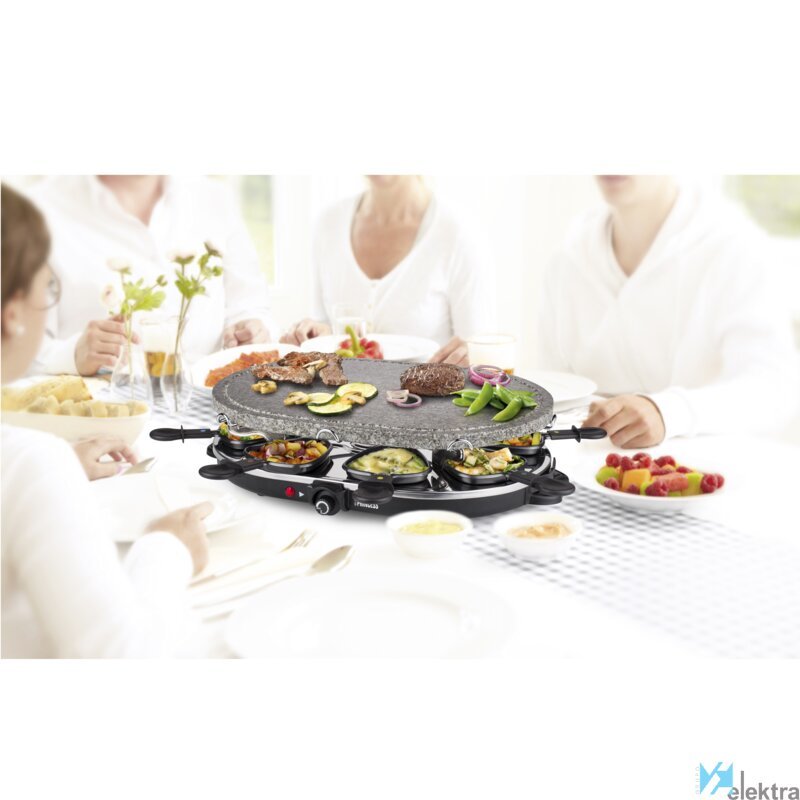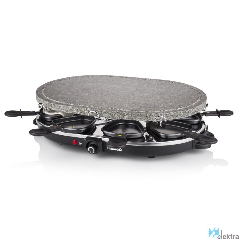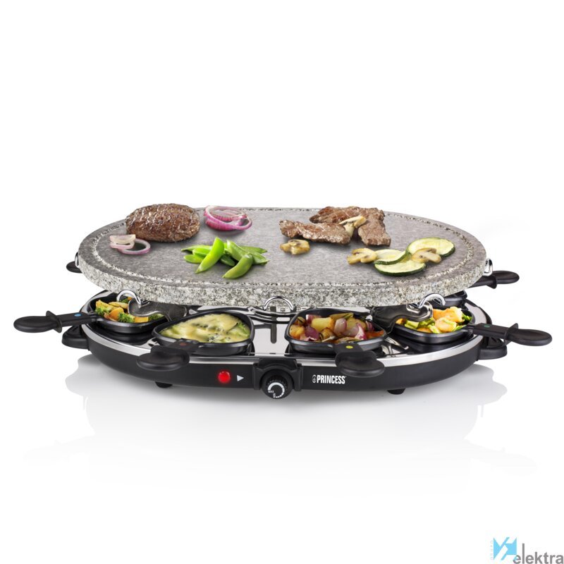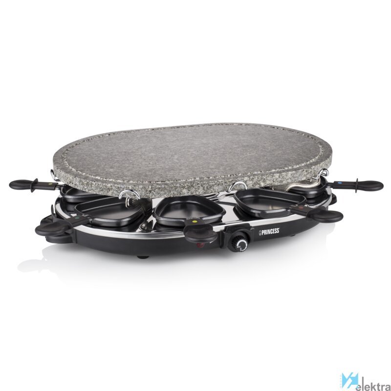 Princess 162720 Raclette Oval Stone 8 personas. Número de personas: 8 personas(s), Color del producto: Negro, Factor de forma: Ovalado. Potencia: 1200 W, Voltaje de entrada AC: 220-240 V. Peso: 7,39 kg. Ancho del paquete: 186 mm, Profundidad del paquete: 490 mm, Altura del paquete: 318 mm. Número de cacerolas: 8 pieza(s)Recipiente :