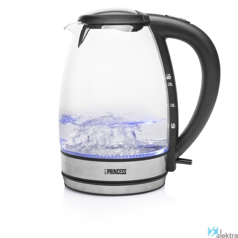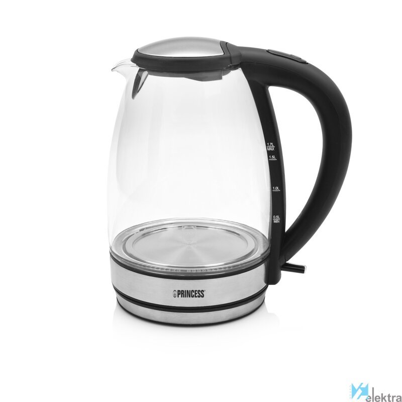 Princess 236015 Jarra Hervidora. Capacidad de reservorio de agua: 1,7 L. Potencia: 2200 W. Color del producto: Negro, Acero inoxidable, Material de la carcasa: Vidrio, Indicador de nivel de agua, Protección contra sobrecalentamiento. Sin cables. FiltradoRecipiente :