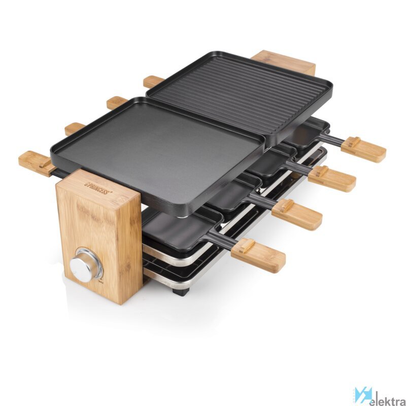 Princess 162910 Raclette Pure 8. Número de personas: 8 personas(s), Color del producto: Negro, Factor de forma: Rectangular. Potencia: 1200 W, Voltaje de entrada AC: 220-240 V. Peso: 2,93 kg. Ancho del paquete: 563 mm, Profundidad del paquete: 265 mm, Altura del paquete: 181 mm. Número de cacerolas: 8 pieza(s)Recipiente :