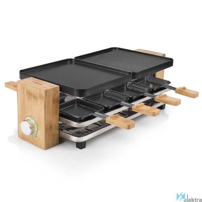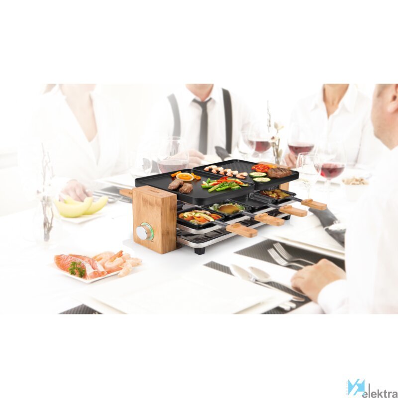 Princess 162910 Raclette Pure 8. Número de personas: 8 personas(s), Color del producto: Negro, Factor de forma: Rectangular. Potencia: 1200 W, Voltaje de entrada AC: 220-240 V. Peso: 2,93 kg. Ancho del paquete: 563 mm, Profundidad del paquete: 265 mm, Altura del paquete: 181 mm. Número de cacerolas: 8 pieza(s)
