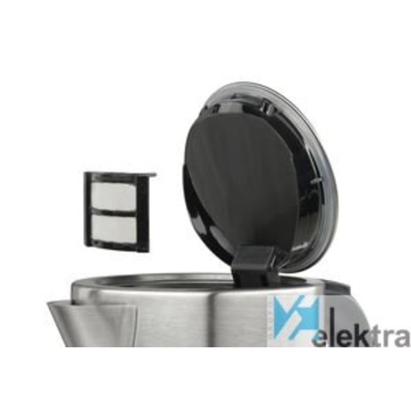 Bosch TWK7S05. Capacidad de reservorio de agua: 1,7 L. Potencia: 2200 W. Color del producto: Negro, Gris, Indicador de nivel de agua, Protección contra sobrecalentamiento. Sin cables. FiltradoRecipiente :