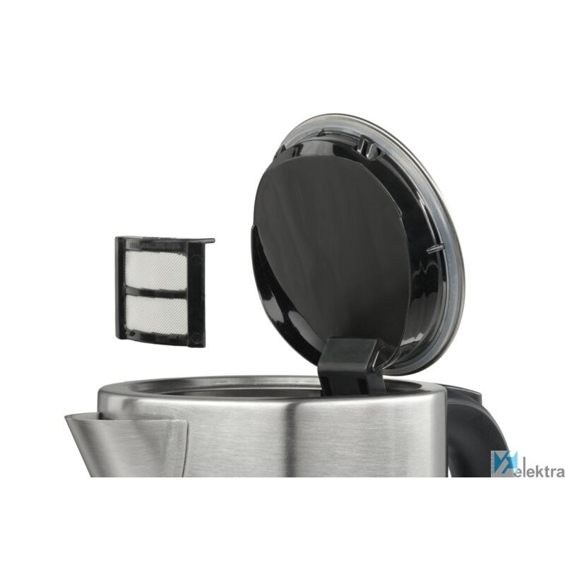 Bosch TWK7S05. Capacidad de reservorio de agua: 1,7 L. Potencia: 2200 W. Color del producto: Negro, Gris, Indicador de nivel de agua, Protección contra sobrecalentamiento. Sin cables. Filtrado