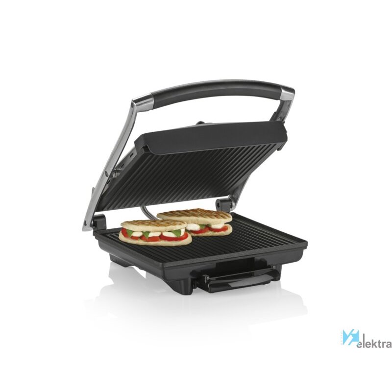 Tristar GR-2848 Grill de contacto. Color del producto: Negro, Plata, Material de la carcasa: Acero inoxidable, Factor de forma: Rectangular. Potencia: 2000 W. Peso: 4 kg. Ancho del paquete: 150 mm, Profundidad del paquete: 350 mm, Altura del paquete: 410 mmRecipiente :