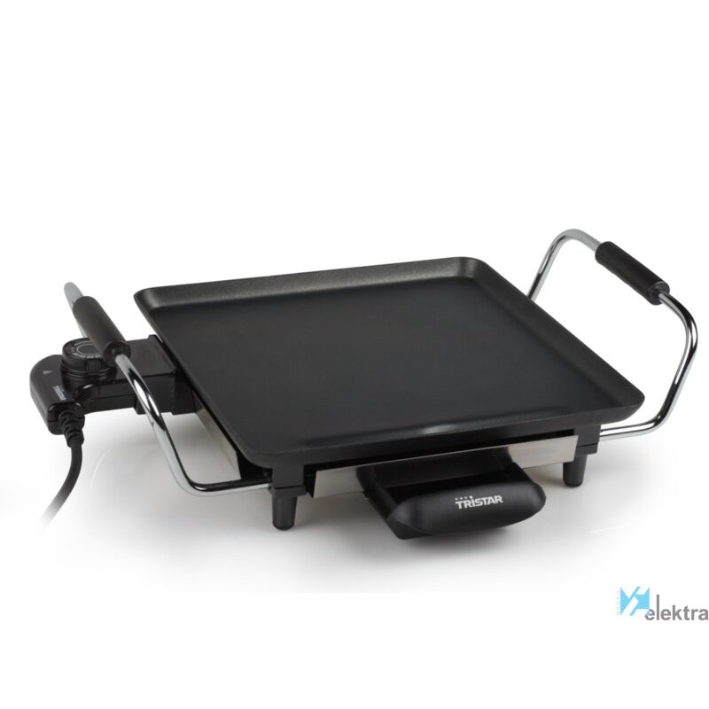 Tristar BP-2958 Plancha de asar. Color del producto: Negro, Tipo de instalación: Independiente, Número de zonas de cocción: 1 zona(s). Potencia: 800 W. Peso: 2 kg. Ancho del paquete: 420 mm, Profundidad del paquete: 115 mm, Altura del paquete: 310 mmRecipiente :