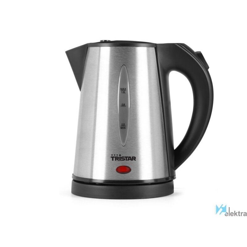 Tristar WK-1327 Hervidora. Capacidad de reservorio de agua: 1 L. Potencia: 2000 W. Color del producto: Negro, Acero inoxidable, Material de la carcasa: Acero inoxidable, Indicador de nivel de agua. Sin cables. FiltradoRecipiente :