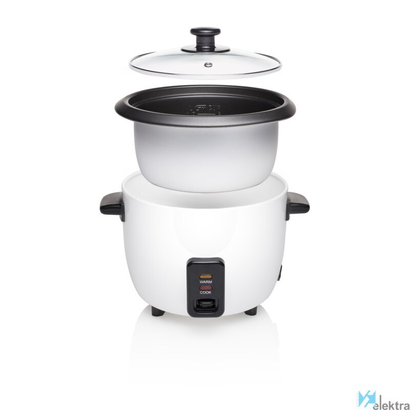 Tristar RK-6117 Arrocera. Color del producto: Negro, Blanco, Volumen: 0,6 L. Potencia: 300 W, Voltaje de entrada AC: 220 - 240 V, Frecuencia de entrada AC: 50 - 60 Hz. Ancho del paquete: 245 mm, Profundidad del paquete: 210 mm, Altura del paquete: 245 mmRecipiente :