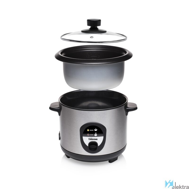 Tristar RK-6126 Arrocera. Color del producto: Negro, Acero inoxidable, Volumen: 1 L, Material de la carcasa: Acero inoxidable. Potencia: 400 W, Voltaje de entrada AC: 220 - 240 V, Frecuencia de entrada AC: 50 - 60 HzRecipiente :