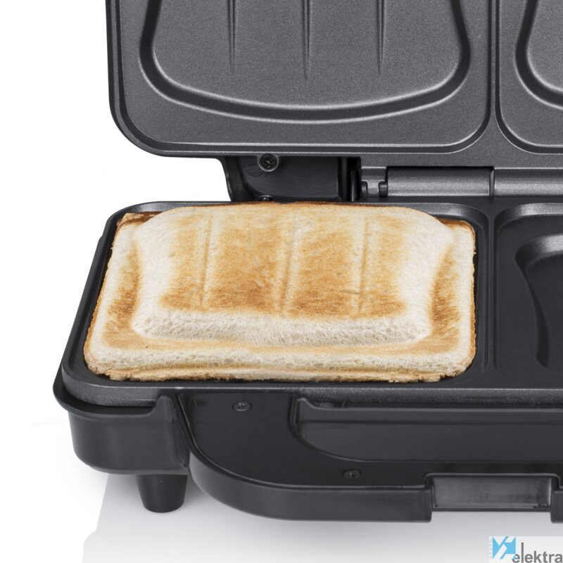 Tristar SA-3060 Sandwichera. Color del producto: Negro, Acero inoxidable, Indicadores LED: Listo, Longitud de cable: 0,85 m. Potencia: 900 W. Peso: 1,6 kg. Ancho del paquete: 125 mm, Profundidad del paquete: 277 mm, Altura del paquete: 307 mm. Cantidad por palé: 120 pieza(s)