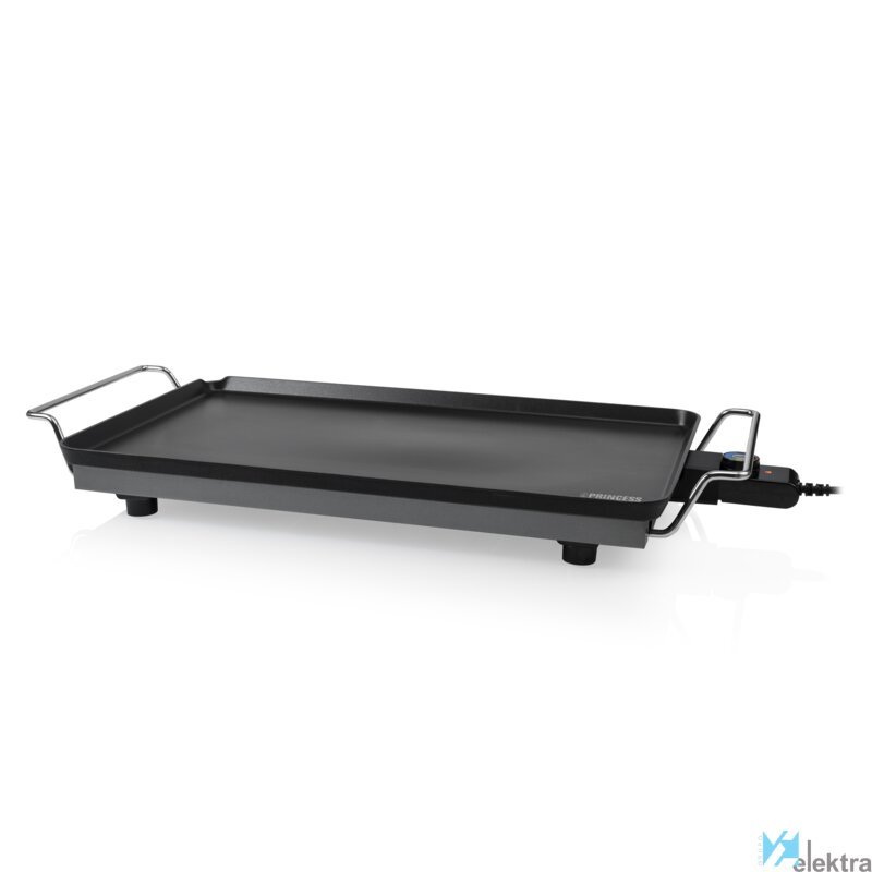 Princess Plancha 102325 Table Chef XXL. Tipo de instalación: Encimera, Tipo de superficie superior: Aluminio, Color del producto: Negro. Tipo de control: Giratorio, Grosor de base de grill: 4 mm. Potencia: 2500 W, Voltaje de entrada AC: 220 - 240 V, Frecuencia de entrada AC: 50 / 60 Hz. Material de la espátula: Madera. Ancho: 717 mm, Profundidad: 360 mm, Altura: 88 mmRecipiente :