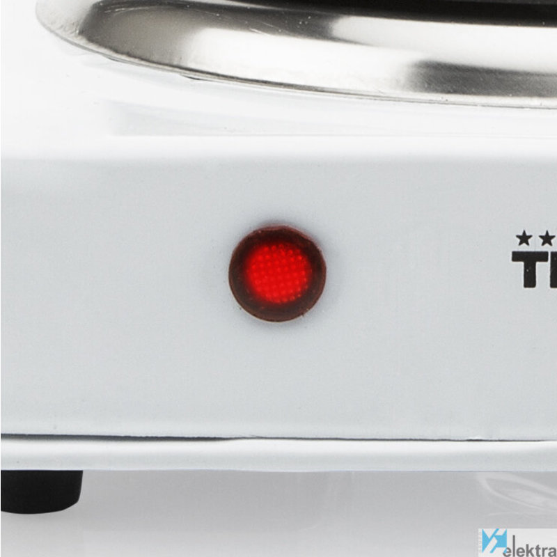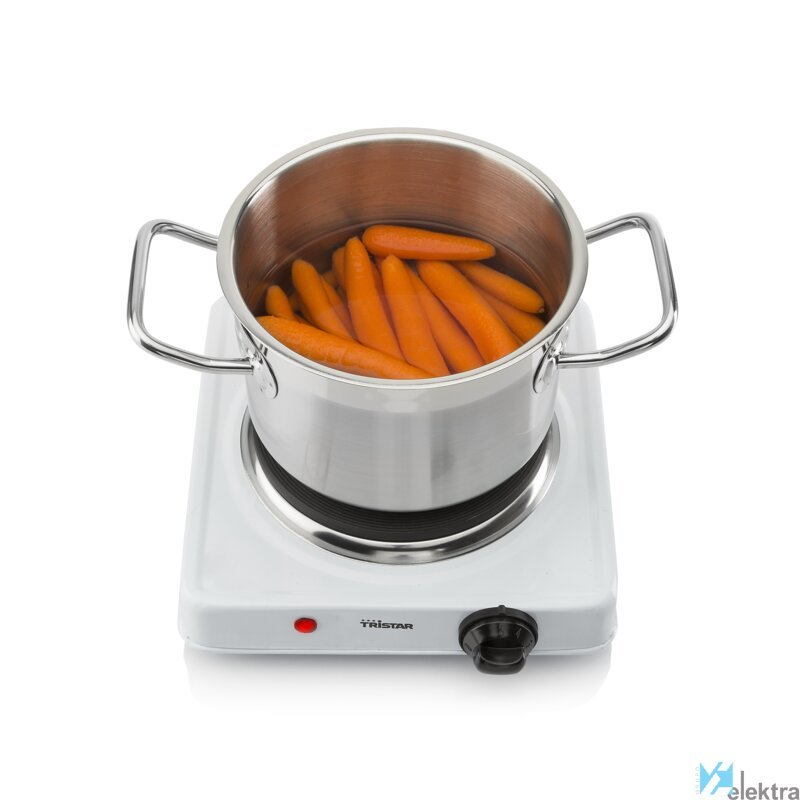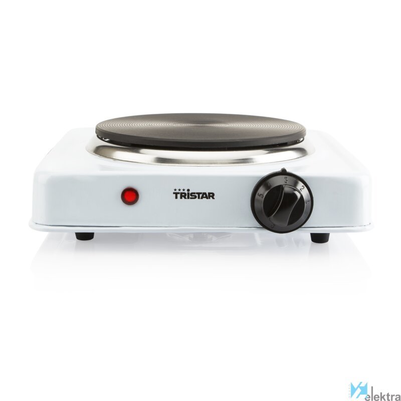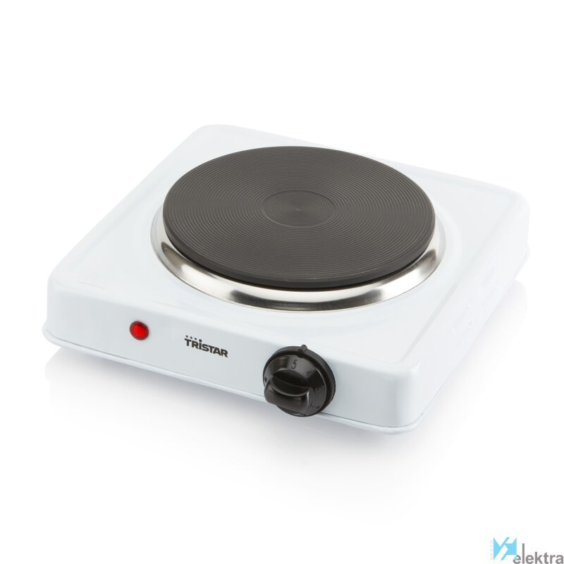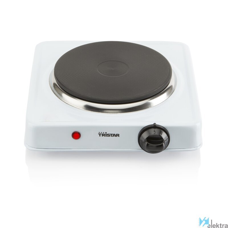 Tristar KP-6185 Placa eléctrica. Color del producto: Blanco, Tipo de instalación: Encimera, Tipo de quemador: Hornillo eléctrico / Placa eléctrica. Zona de cocción media: 1000 W. Tipo de control: Giratorio, Control de posición: Frente, Indicadores LED: Poder. Peso: 1,39 kg, Longitud del cable: 1 m. Peso del paquete: 1,74 kg