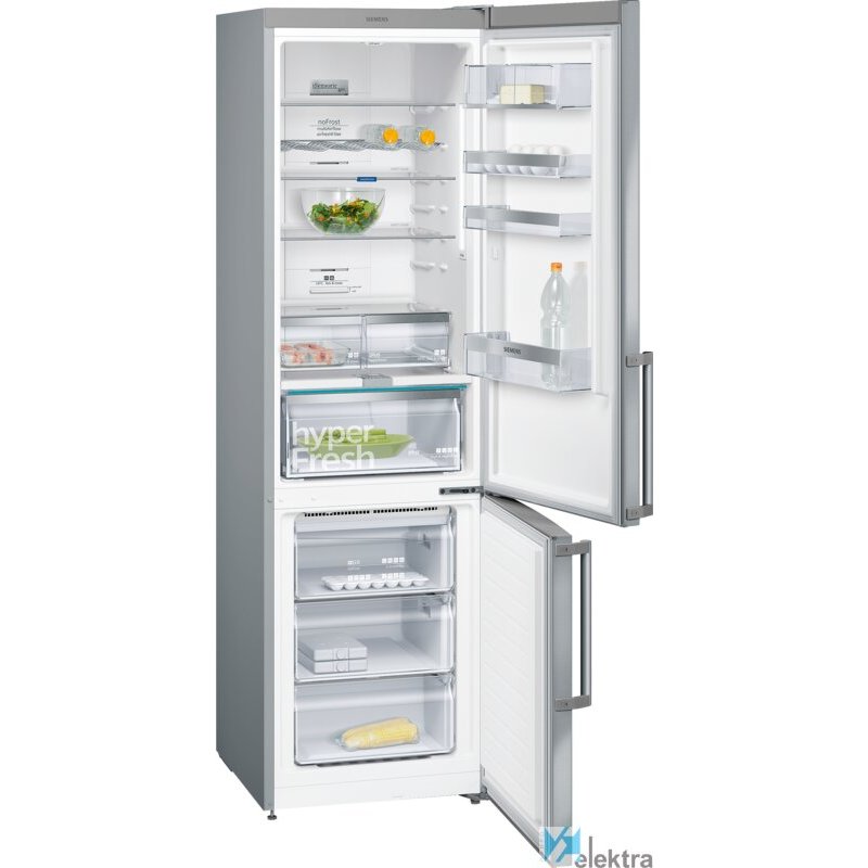 Siemens iQ500 KG39NAI4R. Capacidad neta total: 366 L. Bisagra para puerta: Derecho, Tipo de visualizador: LCD. Clase climática: SN-T, Nivel de ruido: 36 dB. Frigorífico, capacidad neta: 279 L, Antiescarcha (nevera), Sistema multi-flujo de aire (nevera), Luz interior de la nevera, Frigorífico, número de compartimentos: 4. Congelador, capacidad neta: 87 L, Capacidad de congelación: 14 kg/24h, Antiescarcha (congelador). Consumo de energía anual: 182 kWh. Color del producto: Acero inoxidable