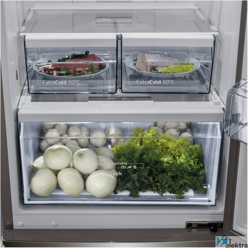 | Detalle de cajones | Frigorífico: Cajón con regulador de la humedad y cajón ExtraCold 0°C para carnes y pescados. Congelador: 3 cajones. |