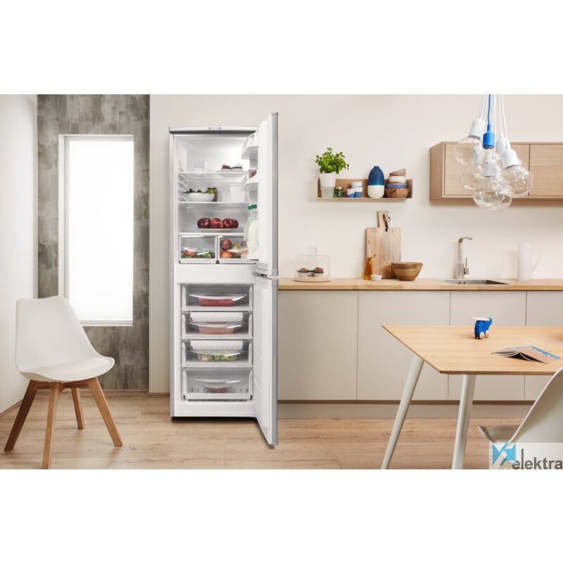 Indesit CAA 55 NX. Capacidad neta total: 234 L. Bisagra para puerta: Derecho. Clase climática: SN-T, Nivel de ruido: 44 dB. Frigorífico, capacidad neta: 150 L. Congelador, capacidad neta: 84 L, Capacidad de congelación: 4,5 kg/24h. Consumo de energía anual: 268 kWh. Color del producto: GrisRecipiente :