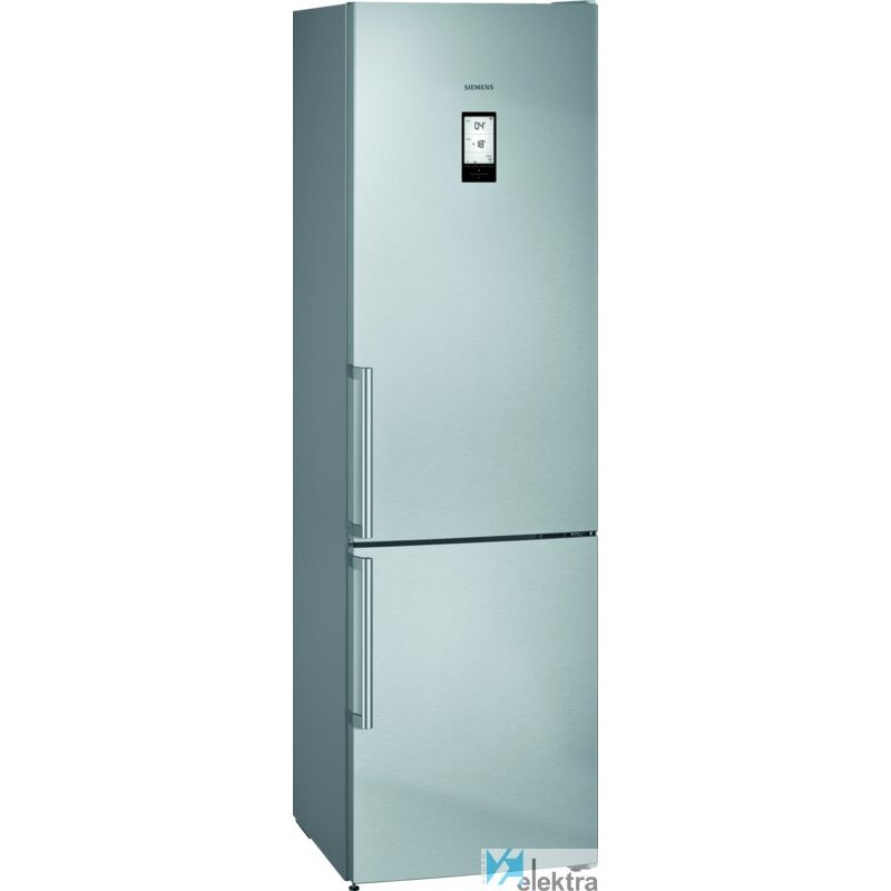 Siemens iQ500 KG39NAIEP. Capacidad neta total: 368 L. Bisagra para puerta: Derecho, Tipo de visualizador: LCD. Clase climática: SN-T, Nivel de ruido: 39 dB. Frigorífico, capacidad neta: 279 L, Antiescarcha (nevera), Sistema multi-flujo de aire (nevera), Luz interior de la nevera. Congelador, capacidad neta: 89 L, Capacidad de congelación: 14 kg/24h, Antiescarcha (congelador). Compartimiento de zona fresca. Clase de eficiencia de energía: E, Consumo de energía anual: 238 kWh