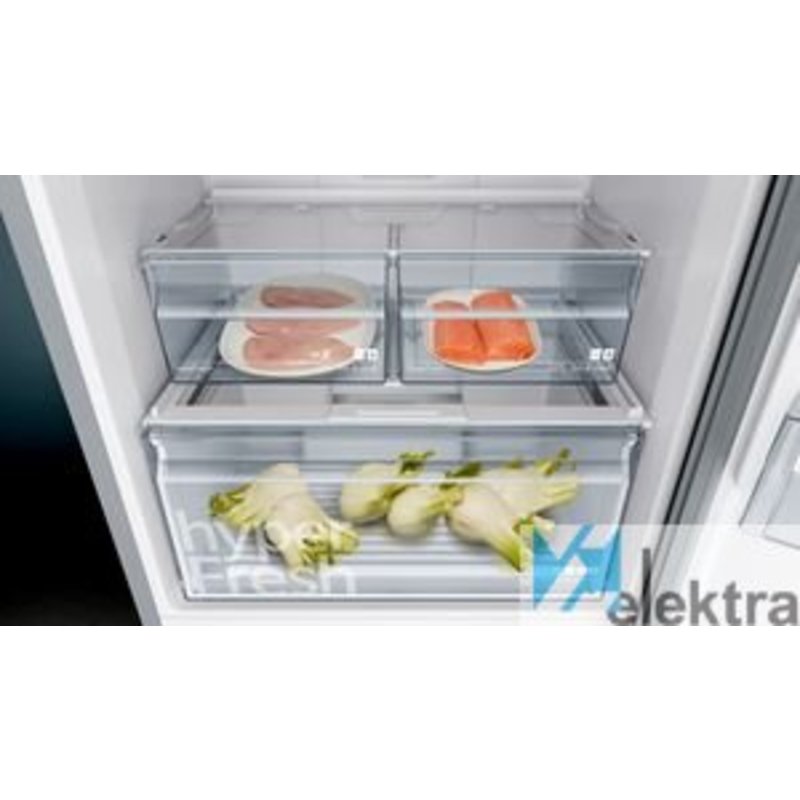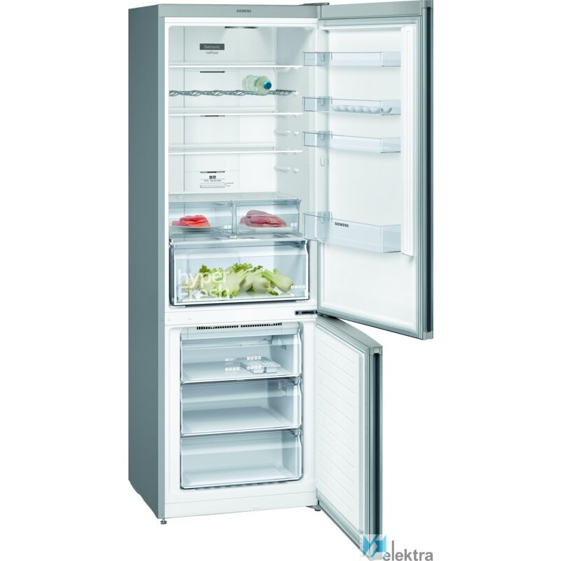 Siemens iQ300 KG49NXIEA. Capacidad neta total: 438 L. Bisagra para puerta: Derecho, Tipo de visualizador: LED. Clase climática: SN-T, Nivel de ruido: 40 dB. Frigorífico, capacidad neta: 330 L, Antiescarcha (nevera), Sistema multi-flujo de aire (nevera), Luz interior de la nevera. Congelador, capacidad neta: 108 L, Capacidad de congelación: 15 kg/24h, Antiescarcha (congelador). Compartimiento d ...Recipiente :
