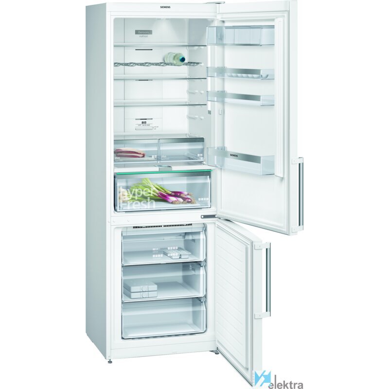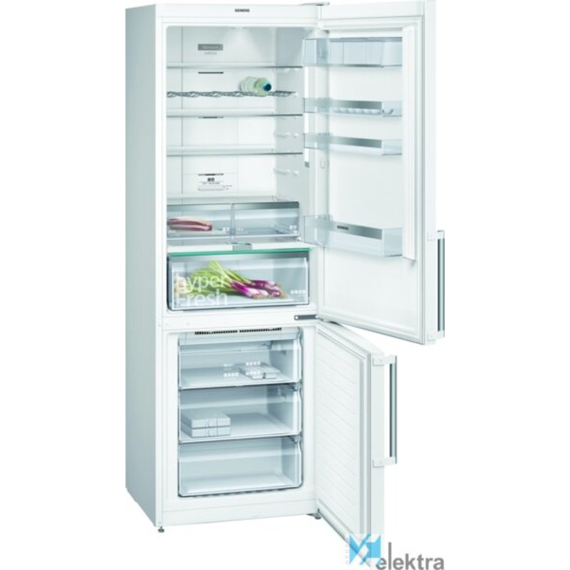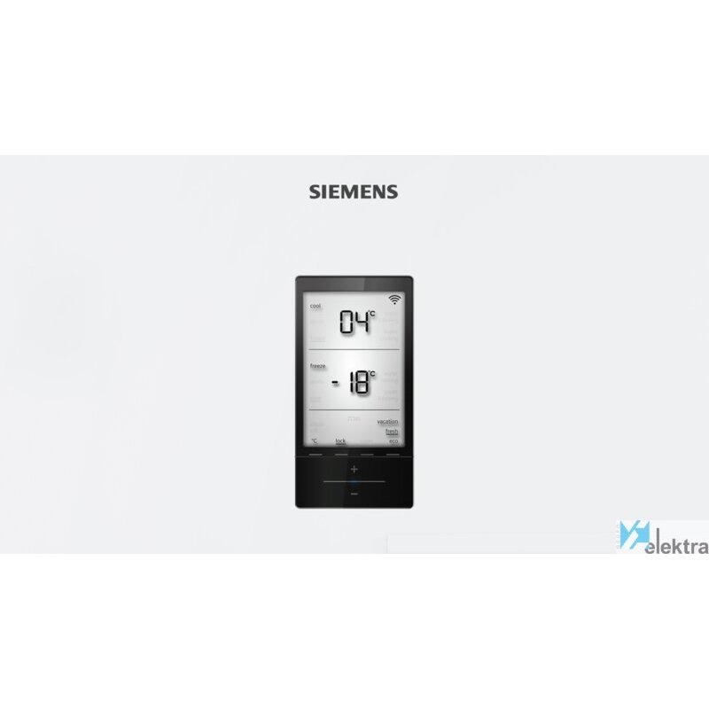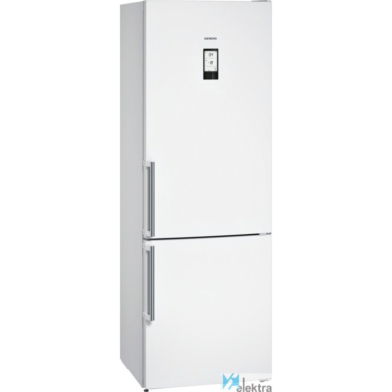 Siemens iQ500 KG49NAWEP. Capacidad neta total: 438 L. Bisagra para puerta: Derecho, Tipo de visualizador: LCD. Clase climática: SN-T, Nivel de ruido: 40 dB. Frigorífico, capacidad neta: 330 L, Antiescarcha (nevera), Sistema multi-flujo de aire (nevera), Luz interior de la nevera. Congelador, capacidad neta: 108 L, Capacidad de congelación: 15 kg/24h, Antiescarcha (congelador). Compartimiento de zona fresca. Clase de eficiencia de energía: E, Consumo de energía anual: 259 kWh