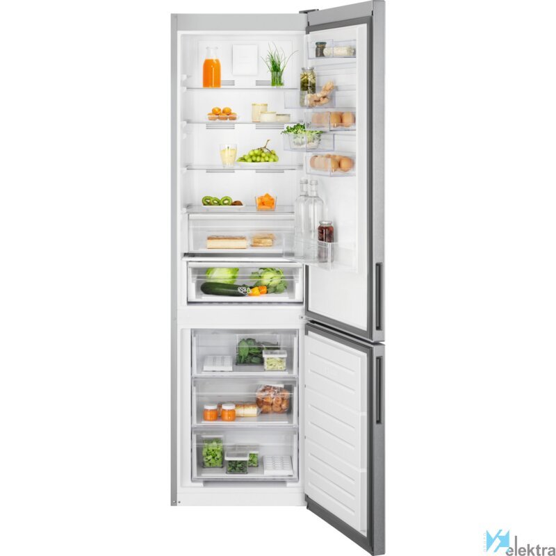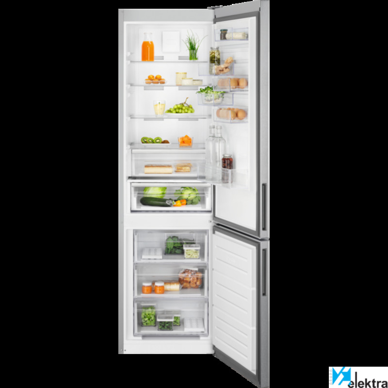 Electrolux LNC7ME34X1. Capacidad neta total: 366 L. Bisagra para puerta: Derecho, Tipo de visualizador: LED. Clase climática: SN-T, Nivel de ruido: 42 dB. Frigorífico, capacidad neta: 266 L, Antiescarcha (nevera), Sistema multi-flujo de aire (nevera), Luz interior de la nevera. Congelador, capacidad neta: 101 L, Capacidad de congelación: 8 kg/24h, Antiescarcha (congelador). Clase de eficiencia ...Recipiente :