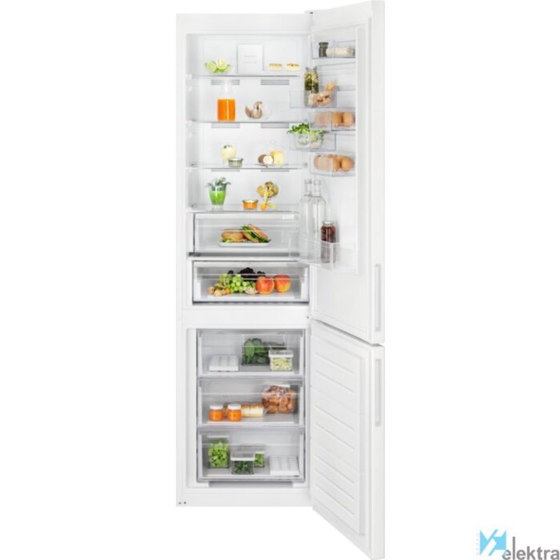 Electrolux LNC7ME36W2. Capacidad neta total: 367 L. Bisagra para puerta: Derecho, Tipo de visualizador: LED. Clase climática: SN-T, Nivel de ruido: 38 dB. Frigorífico, capacidad neta: 266 L, Sistema multi-flujo de aire (nevera), Luz interior de la nevera, Frigorífico, número de compartimentos: 4. Congelador, capacidad neta: 101 L, Capacidad de congelación: 8 kg/24h, Antiescarcha (congelador). Clase de eficiencia de energía: E, Consumo de energía anual: 250 kWh. Color del producto: Blanco