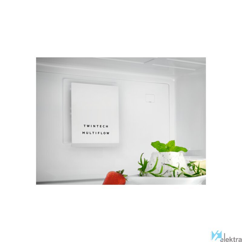 Frigorífico Combi de la Serie 6000 Twintech MultiFlow de 2,01 mts y 60 cm de ancho, display LED en el interior, Cajón ExtraChill, Tirador integrado, luces LED, Puerta plana de aspecto INOX