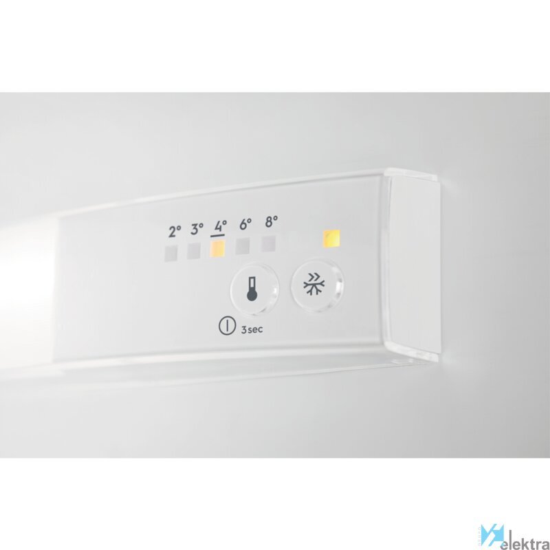 Electrolux ENT3FF18S. Capacidad neta total: 268 L. Bisagra para puerta: Derecho. Clase climática: SN-T, Nivel de ruido: 35 dB. Frigorífico, capacidad neta: 196 L, Luz interior de la nevera, Frigorífico, número de compartimentos: 5, Número de compartimientos para verduras: 2. Congelador, capacidad neta: 72 L, Capacidad de congelación: 3,9 kg/24h. Clase de eficiencia de energía: F, Consumo de energía anual: 272 kWh. Color del producto: Blanco