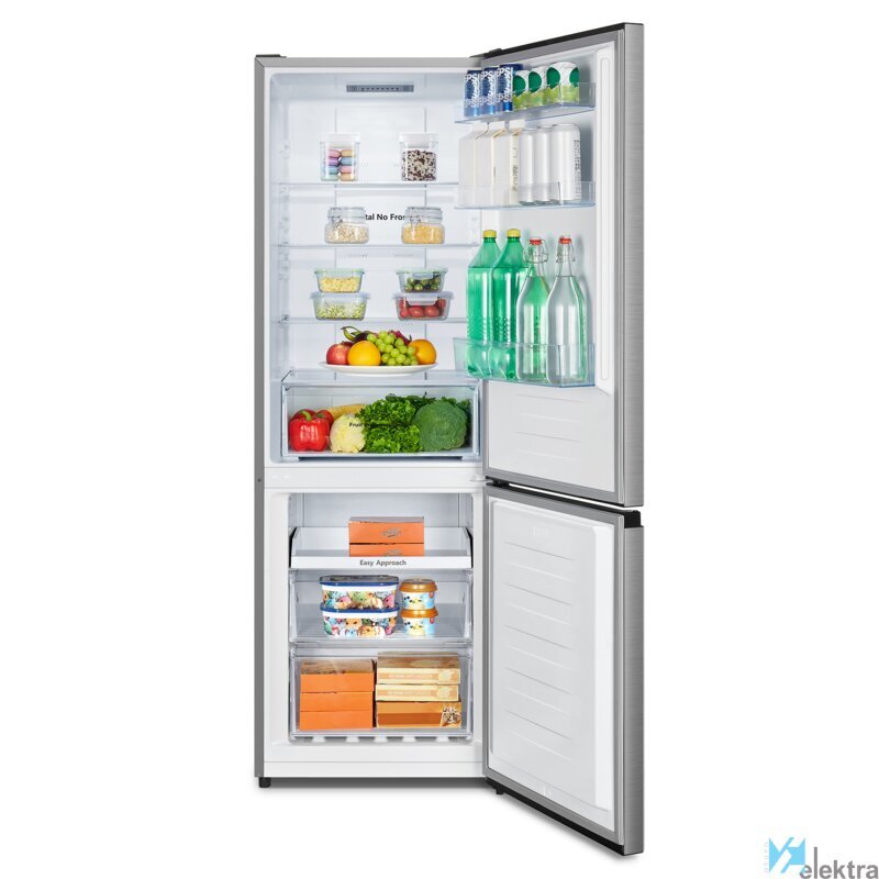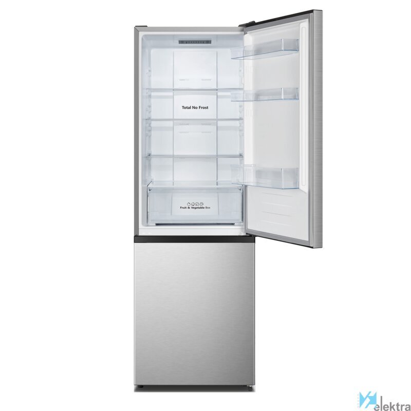 Hisense RB372N4ACE. Capacidad neta total: 292 L. Bisagra para puerta: Derecho, Tipo de visualizador: LED. Clase climática: N-ST, Nivel de ruido: 39 dB. Frigorífico, capacidad neta: 207 L, Antiescarcha (nevera), Sistema multi-flujo de aire (nevera), Luz interior de la nevera, Frigorífico, número de compartimentos: 3. Congelador, capacidad neta: 85 L, Antiescarcha (congelador). Clase de eficiencia de energía: E, Consumo de energía anual: 235 kWh. Color del producto: Acero inoxidable