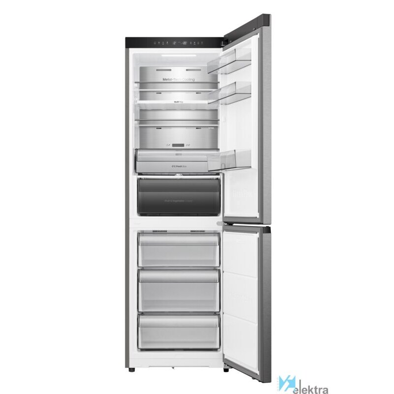 Hisense RB3K330SAIC. Capacidad neta total: 330 L. Bisagra para puerta: Derecho, Tipo de visualizador: LED. Clase climática: SN-N, Nivel de ruido: 35 dB. Frigorífico, capacidad neta: 215 L, Antiescarcha (nevera), Sistema multi-flujo de aire (nevera), Luz interior de la nevera. Congelador, capacidad neta: 115 L, Capacidad de congelación: 10 kg/24h, Antiescarcha (congelador). Compartimiento de zo ...Recipiente :