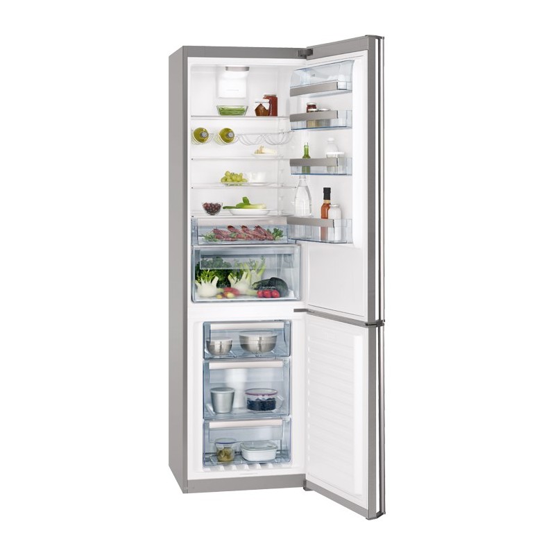Frigorífico combi. Color inox. Altura 2,00. Sistema No frost. Consumo energético A++- Capacidad neta 357 litros. Cajón FreshBox. 41 dB.