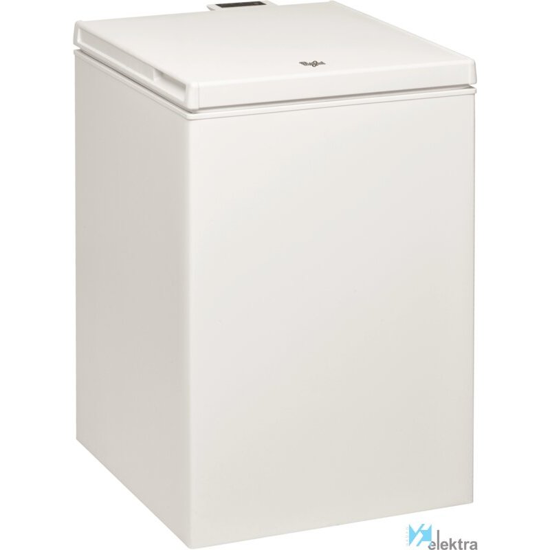 Whirlpool WHS1421. Congelador, capacidad neta: 132 L, Clase climática: SN-ST, Capacidad de congelación: 13 kg/24h, Tiempo de almacenamiento en caso de fallo de alimentación: 28 h, Nivel de ruido: 41 dB, Índice Star: 4*. Bisagra para puerta: Arriba. Clase de eficiencia de energía: F, Consumo de energía anual: 224 kWh. Color del producto: BlancoRecipiente :