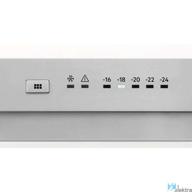 Electrolux LUT7ME28X2. Congelador, capacidad neta: 279 L, Clase climática: SN-T, Capacidad de congelación: 14 kg/24h, Tiempo de almacenamiento en caso de fallo de alimentación: 15 h, Nivel de ruido: 42 dB, Sistema de descongelado. Bisagra para puerta: Izquierda. Tipo de lámpara: LED. Clase de eficiencia de energía: E, Consumo de energía anual: 248 kWh. Color del producto: Plata, Acero inoxidableRecipiente :
