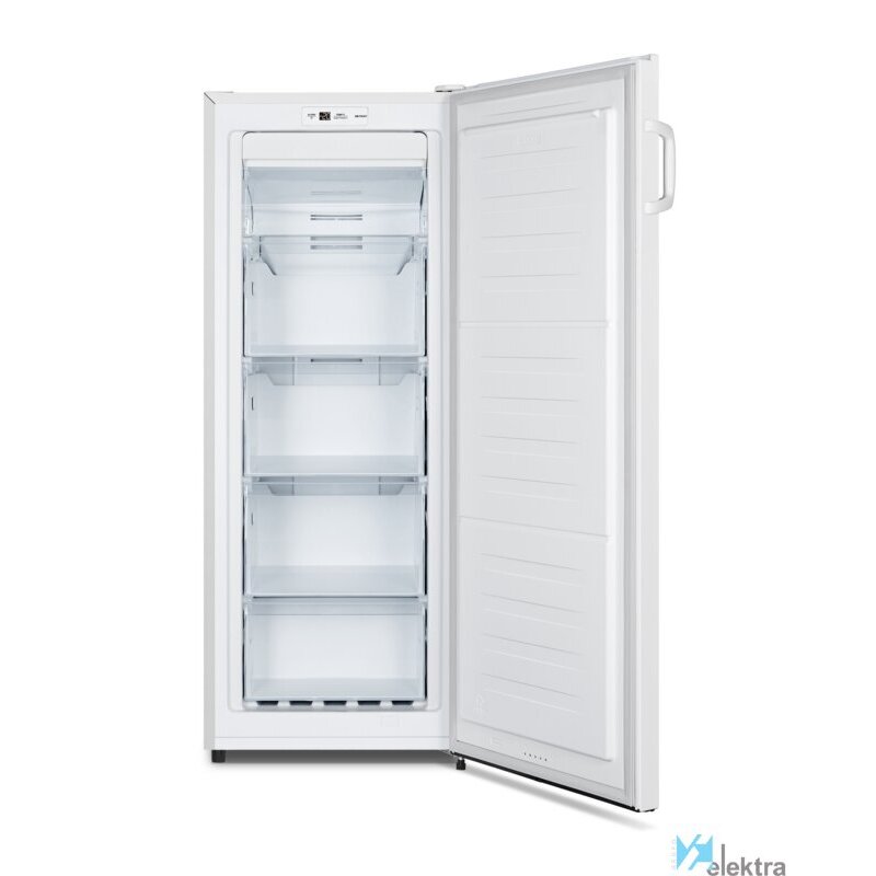 Hisense FV191N4AW2. Congelador, capacidad neta: 155 L, Capacidad de congelación: 12 kg/24h, Tiempo de almacenamiento en caso de fallo de alimentación: 9,8 h, Nivel de ruido: 41 dB, Índice Star: 4*, Sistema de descongelado. Bisagra para puerta: Derecho. Clase de eficiencia de energía: E, Consumo de energía anual: 204,81 kWh. Color del producto: Blanco
