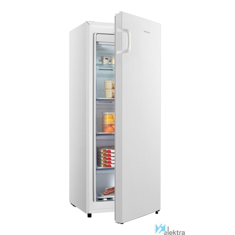 Hisense FV191N4AW2. Congelador, capacidad neta: 155 L, Capacidad de congelación: 12 kg/24h, Tiempo de almacenamiento en caso de fallo de alimentación: 9,8 h, Nivel de ruido: 41 dB, Índice Star: 4*, Sistema de descongelado. Bisagra para puerta: Derecho. Clase de eficiencia de energía: E, Consumo de energía anual: 204,81 kWh. Color del producto: BlancoRecipiente :