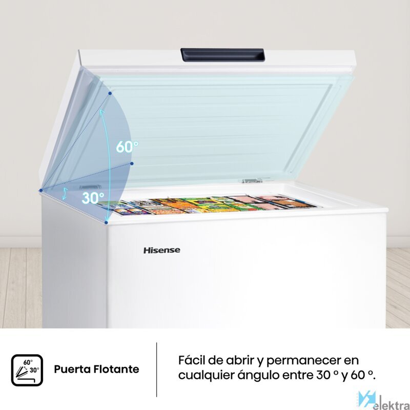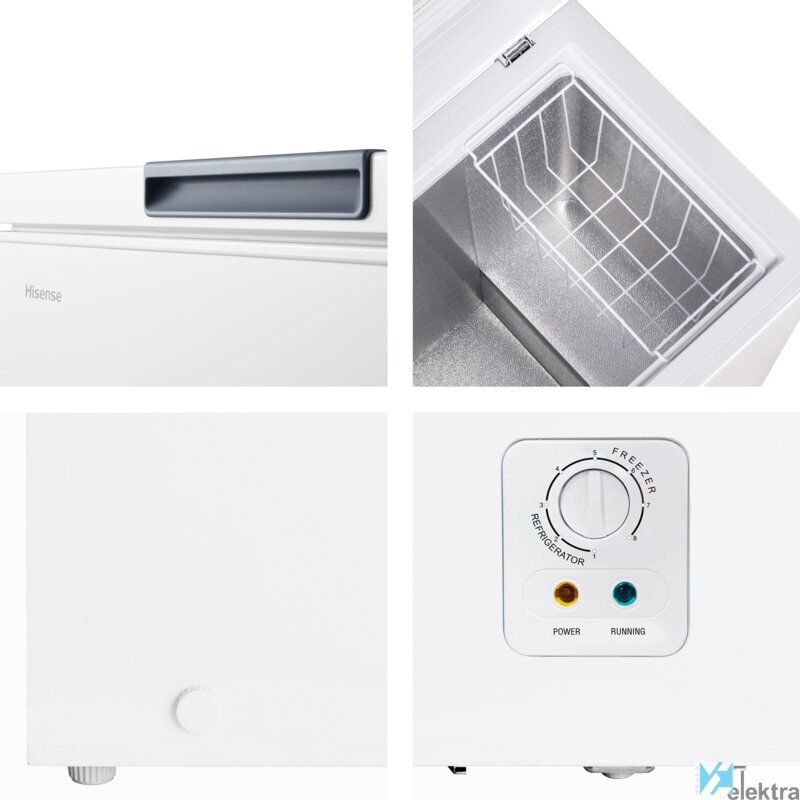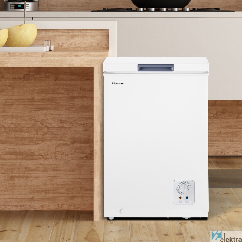 Hisense FT125D4AWE. Congelador, capacidad neta: 95 L, Clase climática: SN-T, Capacidad de congelación: 4,5 kg/24h, Nivel de ruido: 40 dB, Índice Star: 4*. Bisagra para puerta: Arriba. Clase de eficiencia de energía: E, Consumo de energía anual: 167 kWh. Color del producto: BlancoRecipiente :