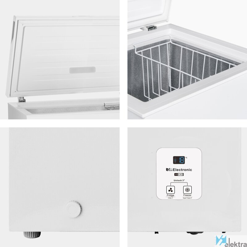 Hisense FT247D4AWYLE. Congelador, capacidad neta: 191 L, Clase climática: SN-T, Capacidad de congelación: 10 kg/24h, Tiempo de almacenamiento en caso de fallo de alimentación: 135 h, Nivel de ruido: 39 dB, Índice Star: 4*. Bisagra para puerta: Arriba. Tipo de lámpara: LED. Clase de eficiencia de energía: E, Consumo de energía anual: 198 kWh. Color del producto: BlancoRecipiente :