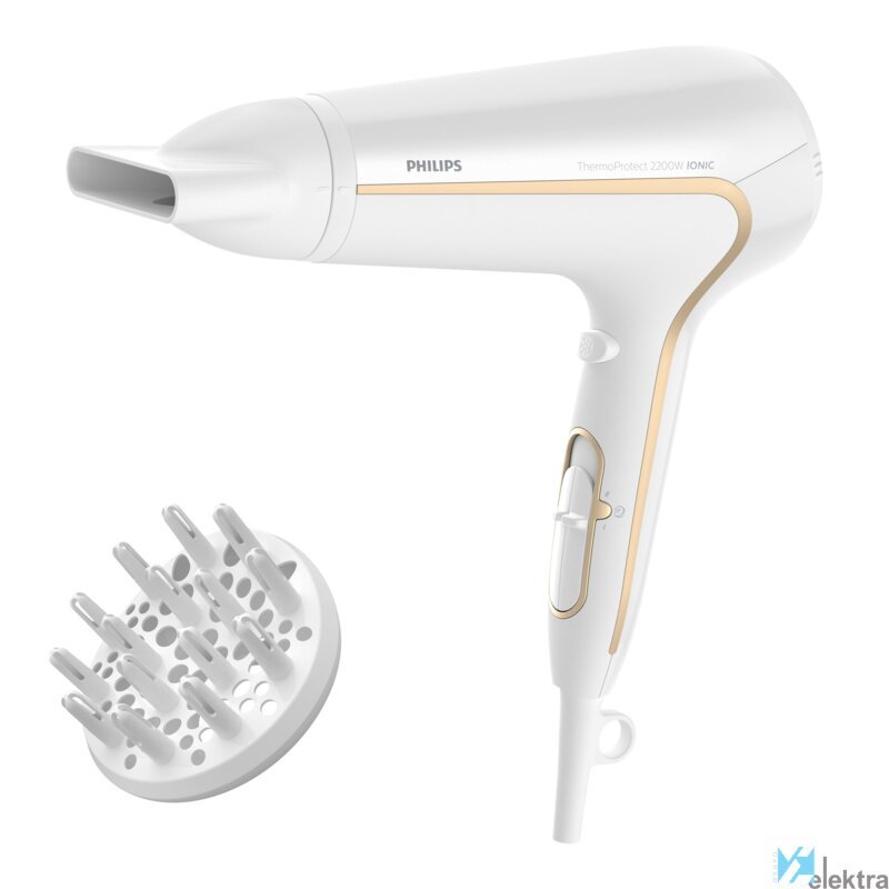 Philips ThermoProtect Ionic Secador HP8232/00. Tipo de motor: CC. Color del producto: Blanco, Coloración de superficie: Monocromo, Material de la carcasa: Acrilonitrilo butadieno estireno (ABS). Potencia: 2200 W, Voltaje de entrada AC: 220-240 V, Frecuencia de entrada AC: 50 - 60 Hz. Ancho: 220 mm, Profundidad: 100 mm, Altura: 310 mm. Ancho del paquete: 310 mm, Profundidad del paquete: 110 mm, Altura del paquete: 230 mm