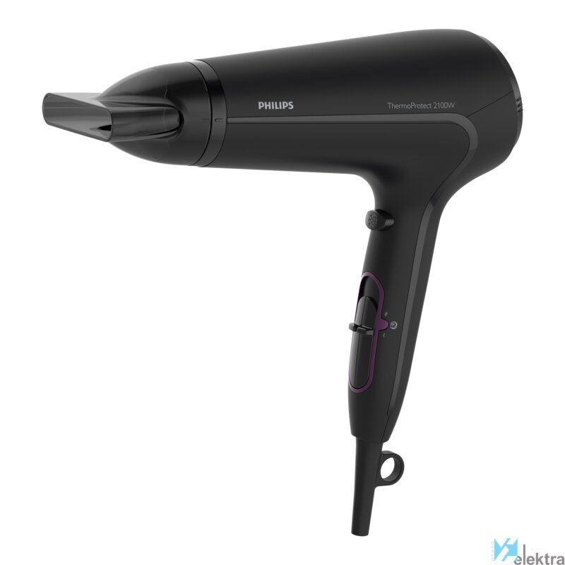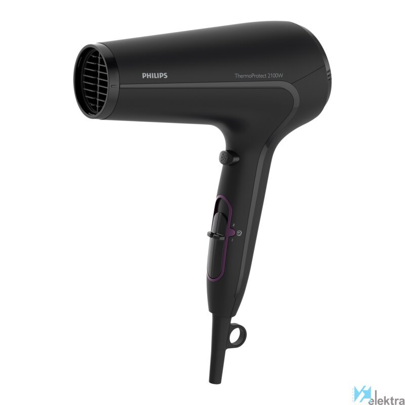 Philips ThermoProtect DryCare Advanced HP8230/00 Secador de cabello. Tipo de motor: CC. Color del producto: Negro, Material de la carcasa: Acrilonitrilo butadieno estireno (ABS), Tipo de colgador: Con agujero en la empuñadura para colgar. Potencia: 2100 W, Voltaje de entrada AC: 220-240 V, Frecuencia de entrada AC: 50 - 60 Hz. Ancho: 220 mm, Profundidad: 100 mm, Altura: 310 mm. Peso del envase completo: 5,7 kg