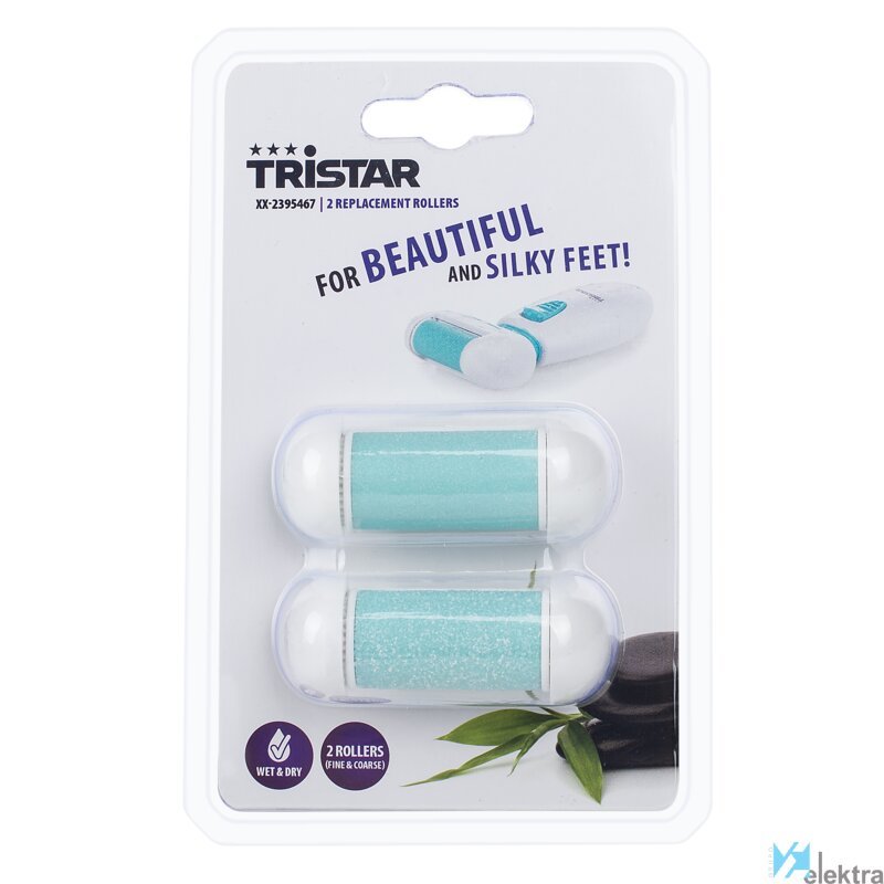 Tristar XX-2395467 2 rodillos de recambio. Tipo de producto: Cabezal del cepillo de pies, Marca compatible: Tristar, Número de productos incluidos: 2 pieza(s). Ancho del paquete: 85 mm, Altura del paquete: 28 mm, Tipo de embalaje: Blister