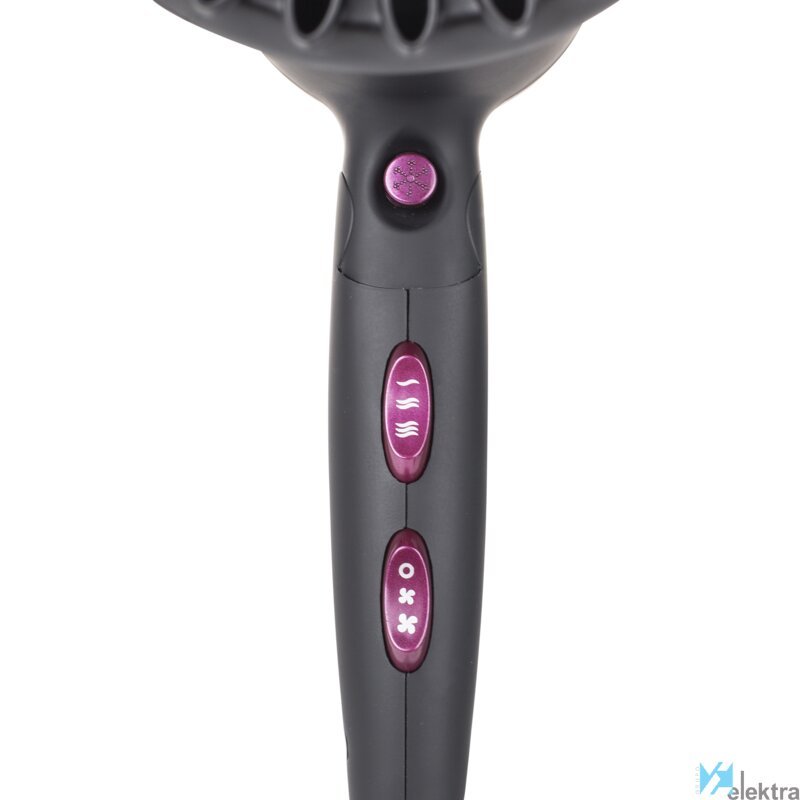 Tristar HD-2358 Secador de pelo. Color del producto: Negro, Violeta, Tipo de colgador: Con agujero en la empuñadura para colgar, Longitud del cable: 1,7 m. Potencia: 2000 W, Voltaje de entrada AC: 230 V. Peso: 600 g. Ancho del paquete: 105 mm, Profundidad del paquete: 235 mm, Altura del paquete: 225 mm. Cantidad por contenedor (20ft): 3856 pieza(s), Cantidad por contenedor (40ft): 7711 pieza(s), Número de cajas de cartón por palé: 15 pieza(s)
