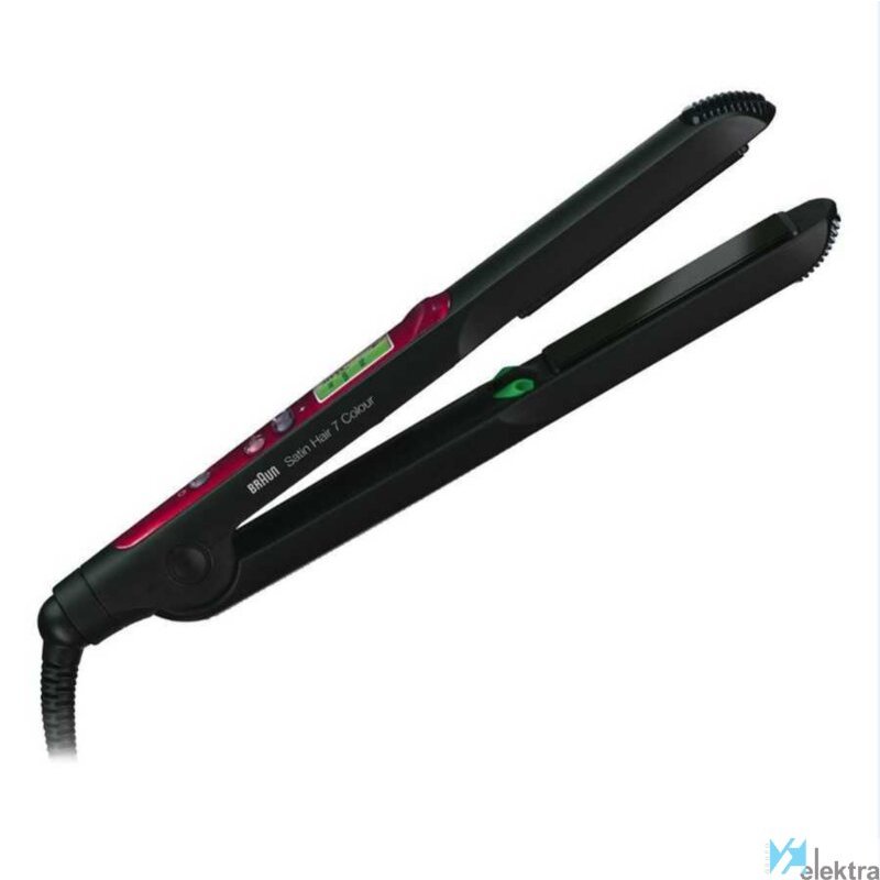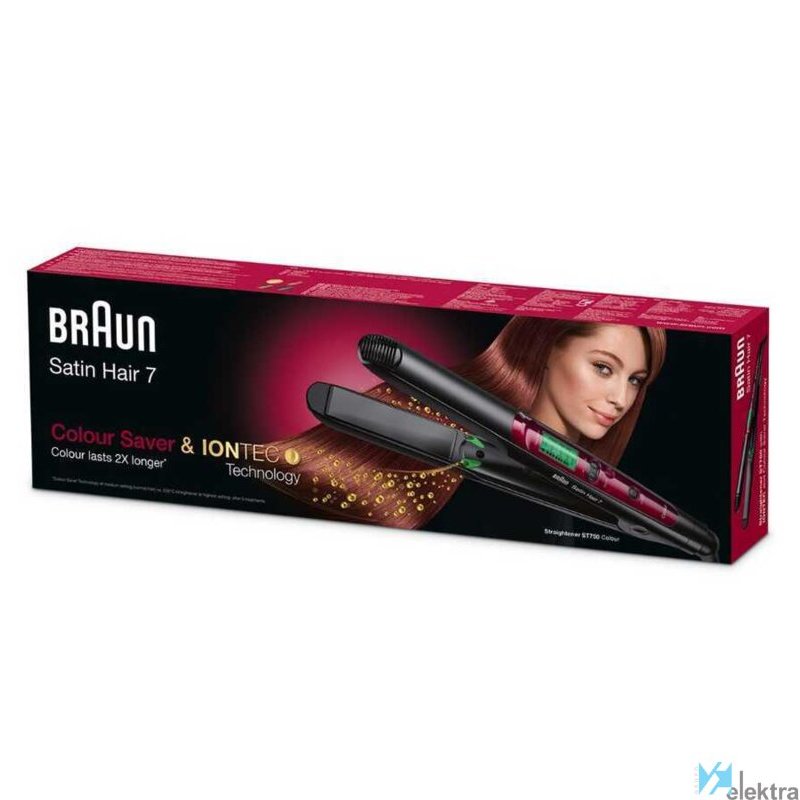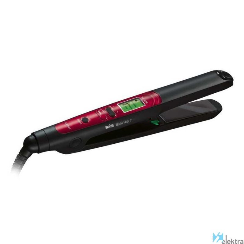 Braun Satin Hair 7 ST750. Tipo: Plancha de pelo, Tecnología: Caliente, Tiempo de calentamiento: 40 s. Color del producto: Negro, Rojo. Longitud del cable: 2 m, Tipo de visualizador: LCD. Fuente de energía: Corriente alterna, Voltaje de entrada AC: 100 - 240 V. Temperatura: 200 °C
